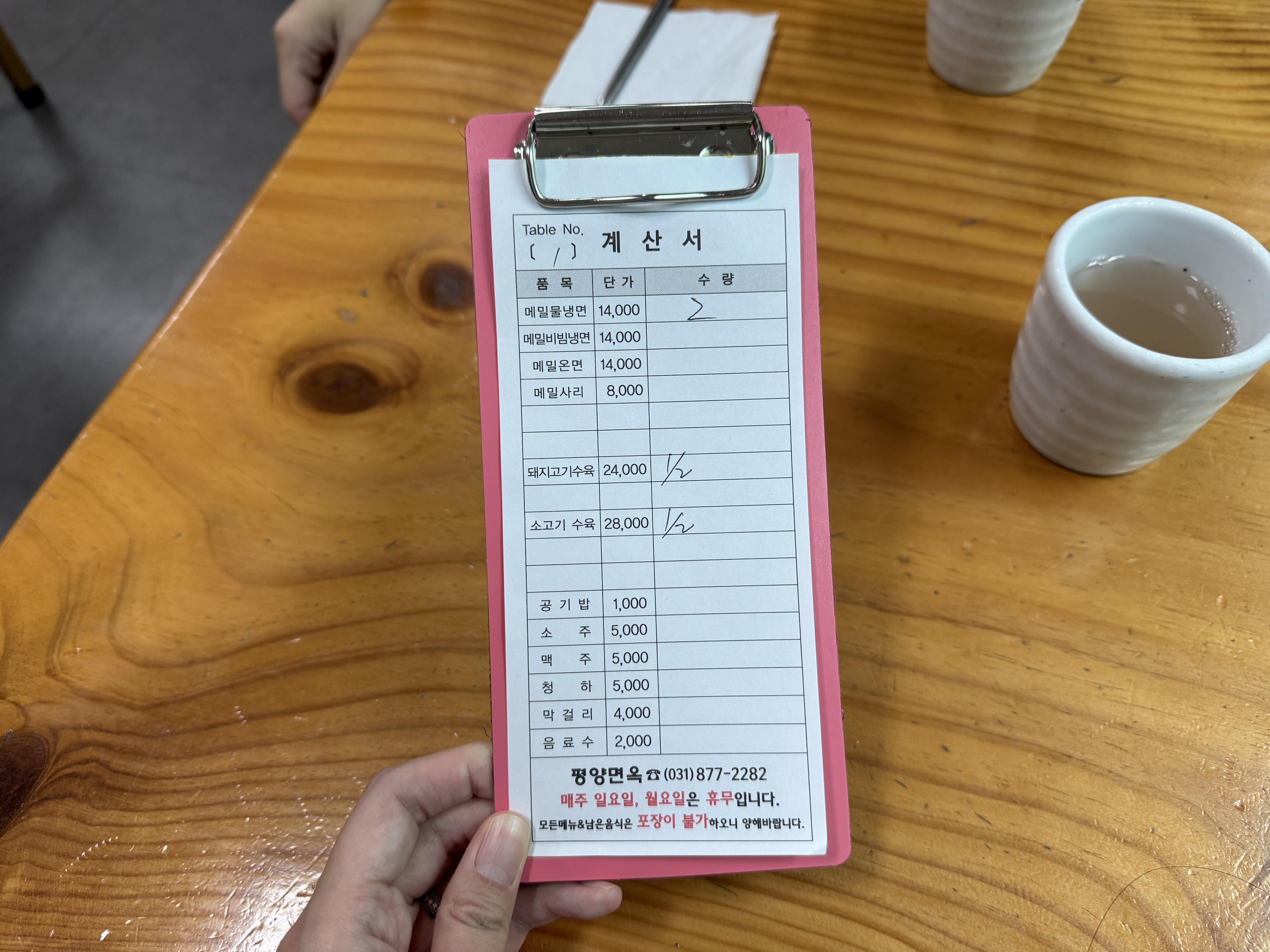 메밀물냉면 14000원 * 2