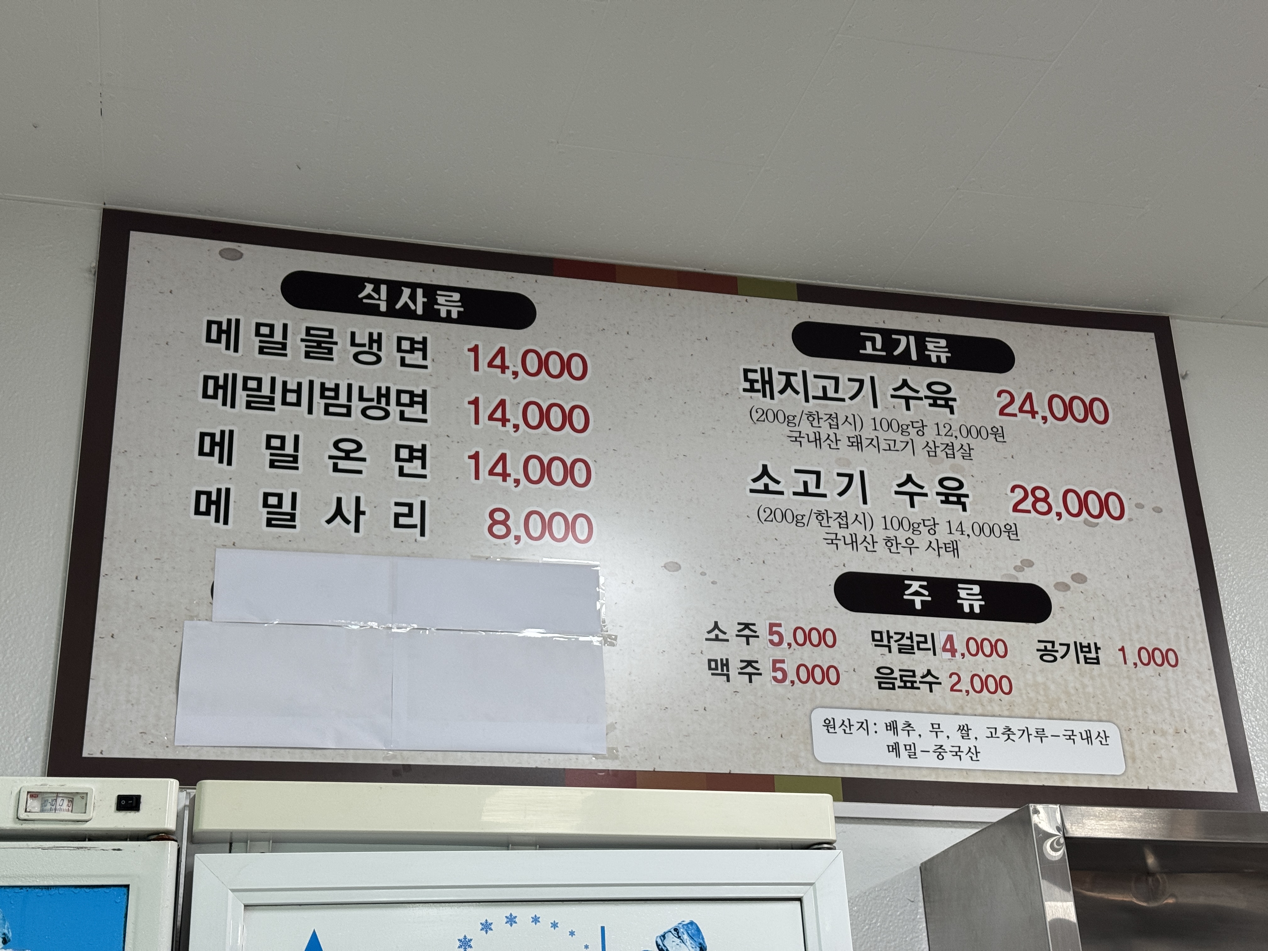 평양면옥 메뉴판