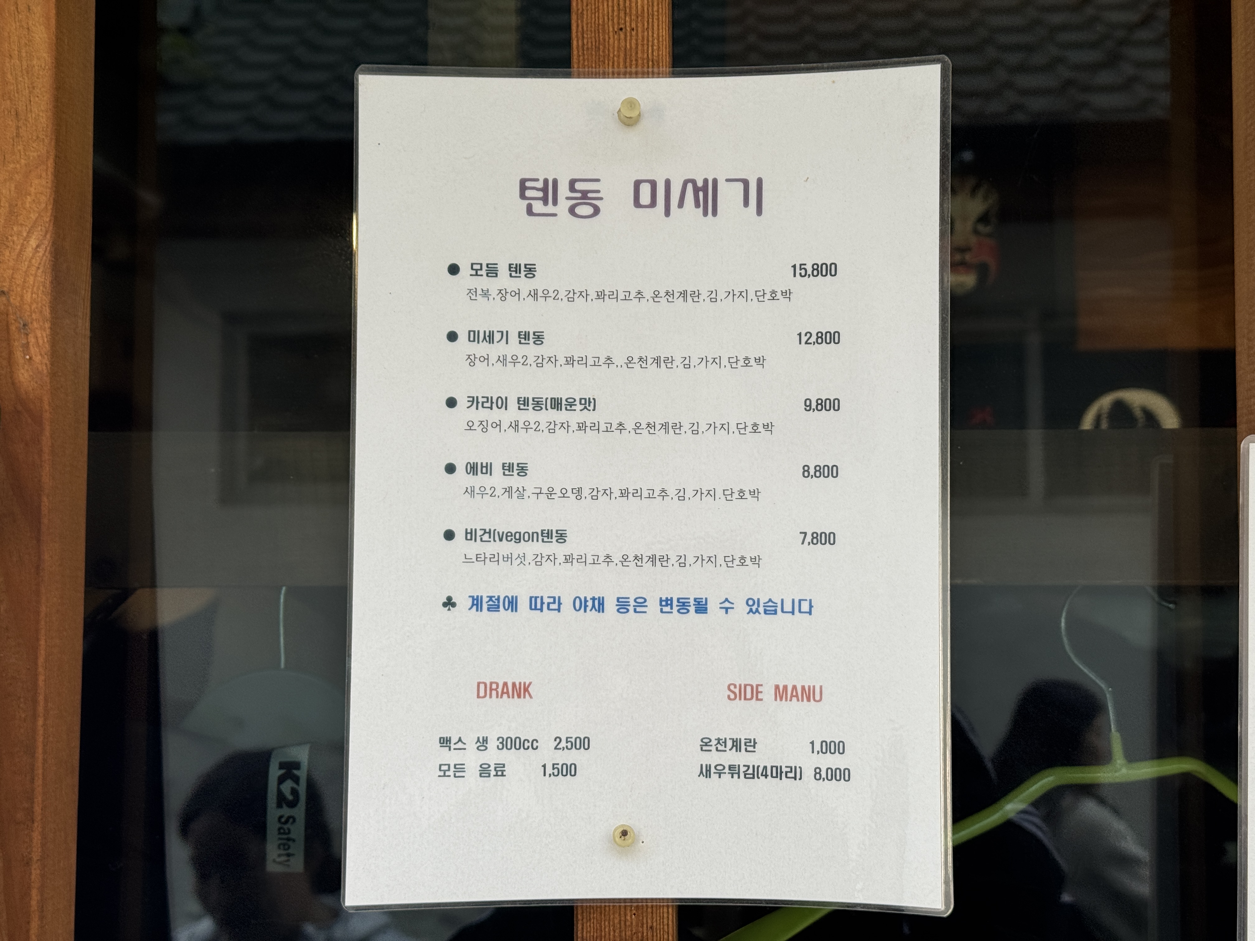 텐동미세기 메뉴판