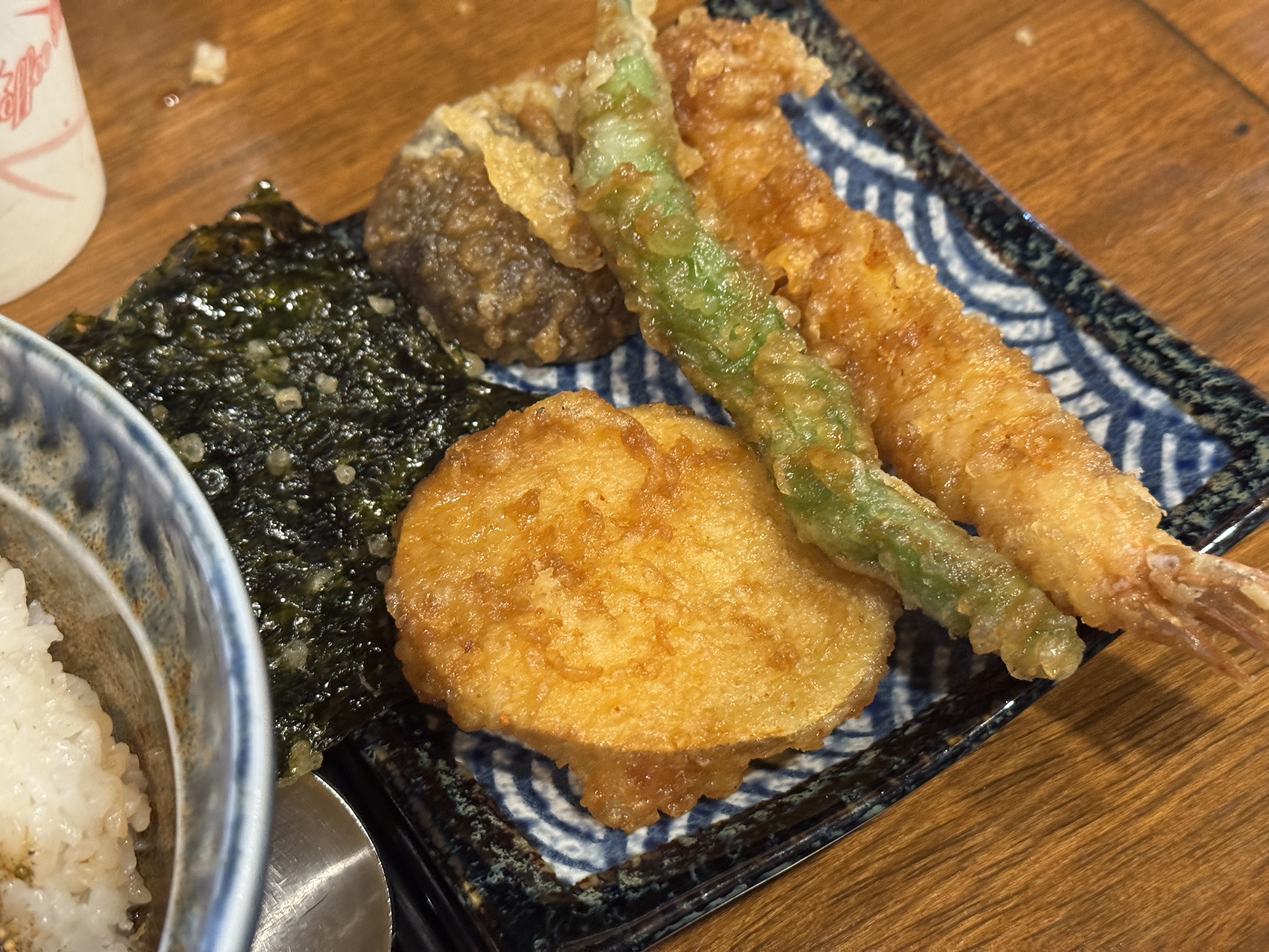 옆에 슬쩍 보이는 새우튀김은, 새우튀김 안 먹는 친구가 줬어요!