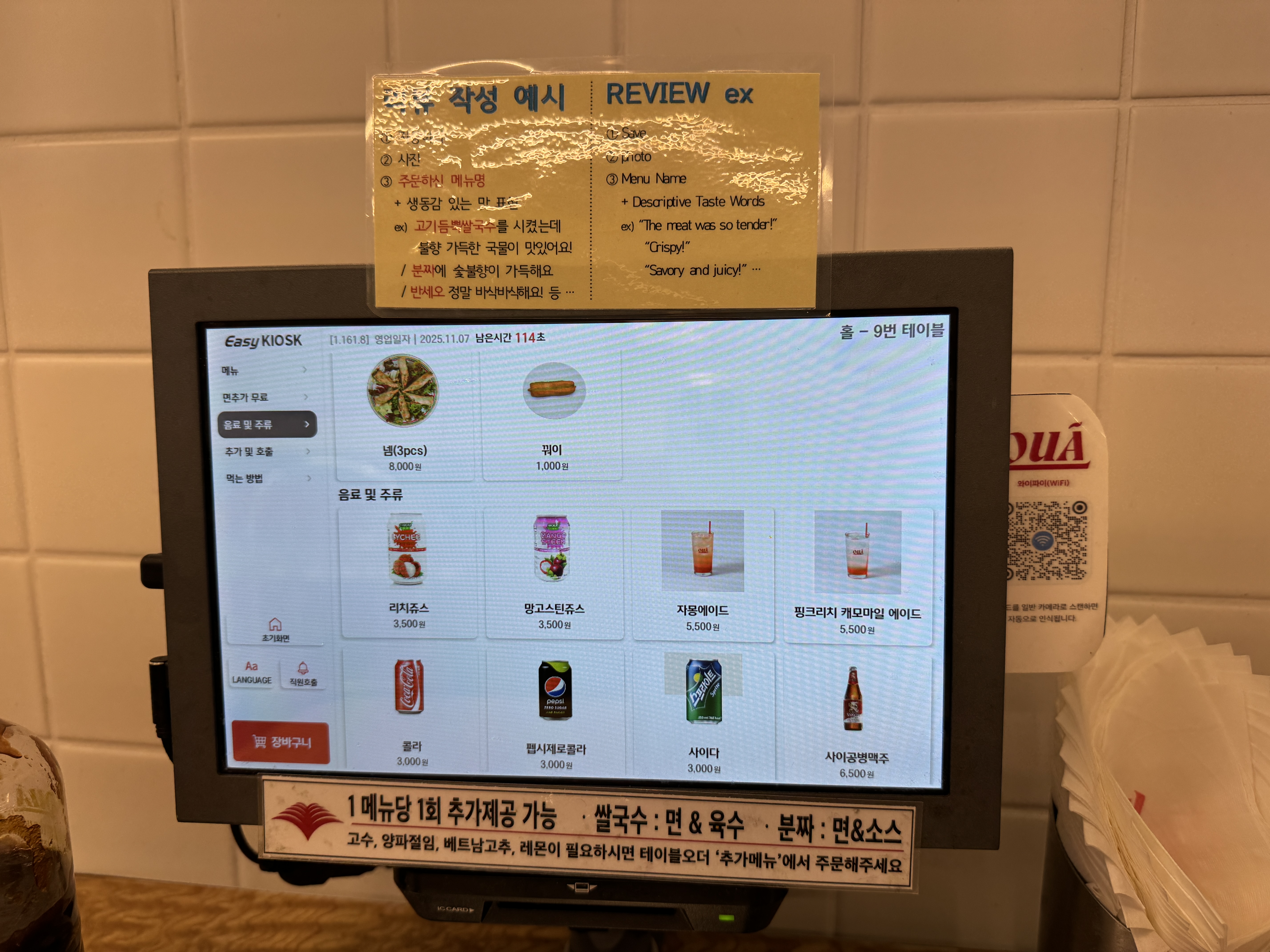 패드로 자리에서 주문, 결제까지 하는 시스템이에요.