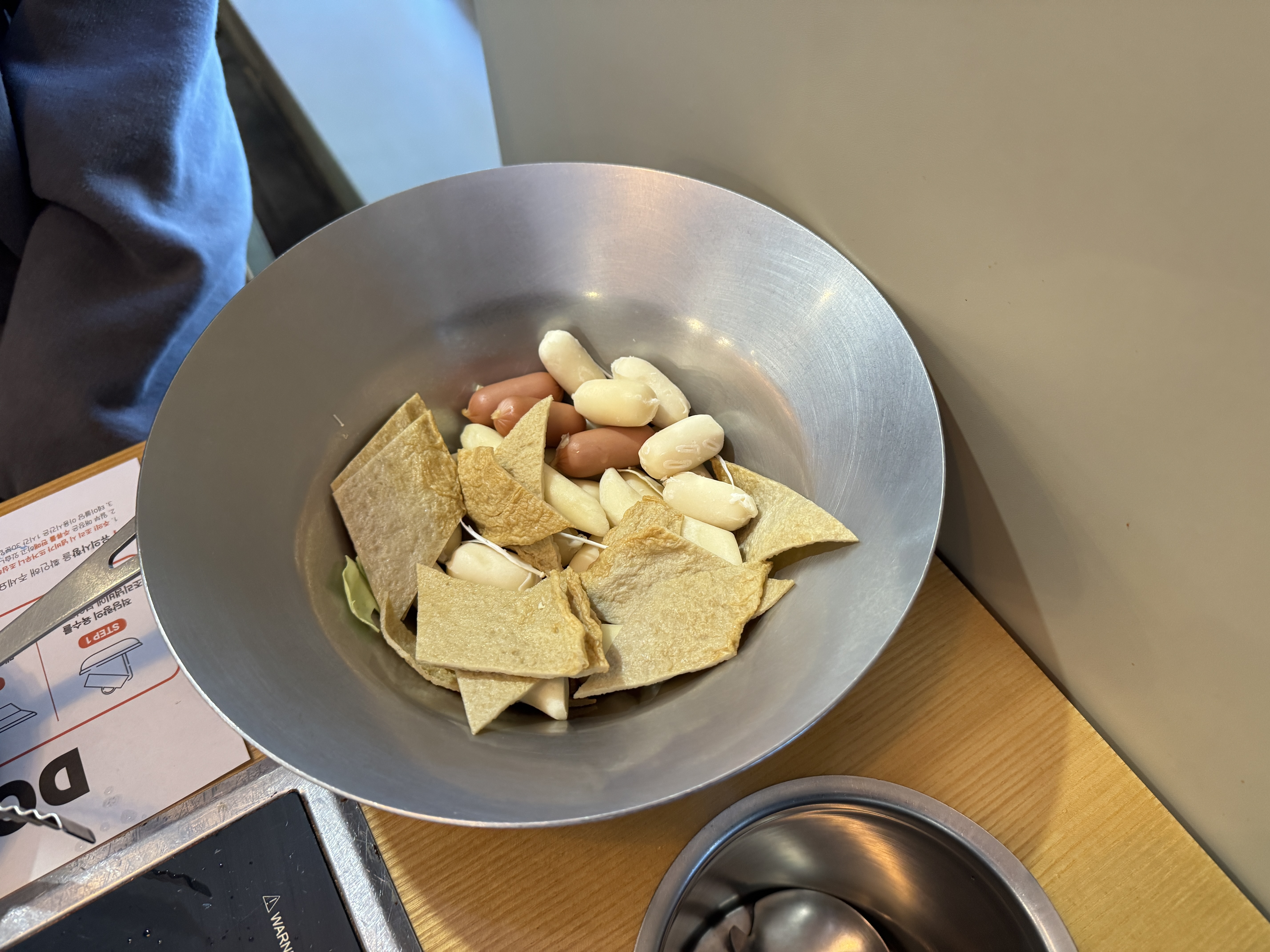 제일 먼저 떡, 오뎅, 소시지, 계란, 야채존!